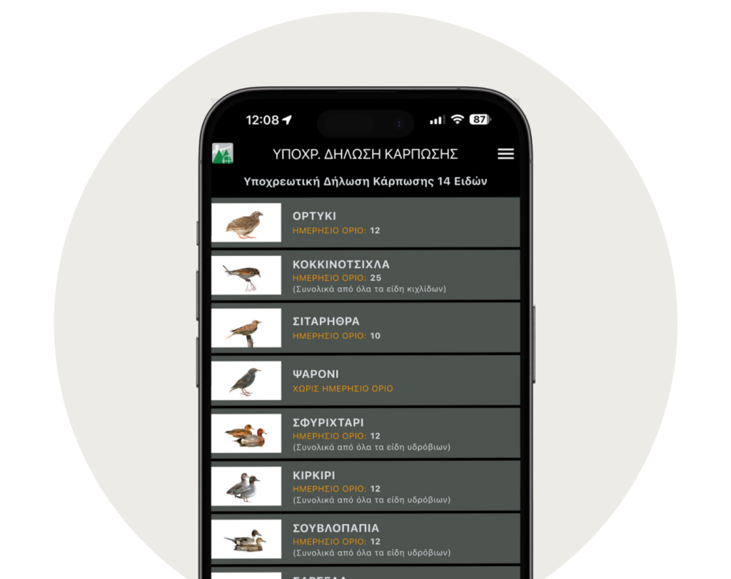 Η δήλωση της κάρπωσης των 14 θηραματικών ειδών είναι υποχρεωτική από τη Ρυθμιστική απόφαση θήρας και πρέπει να πραγματοποιείται πριν την αποχώρισή μας από τον κυνηγότοπο.