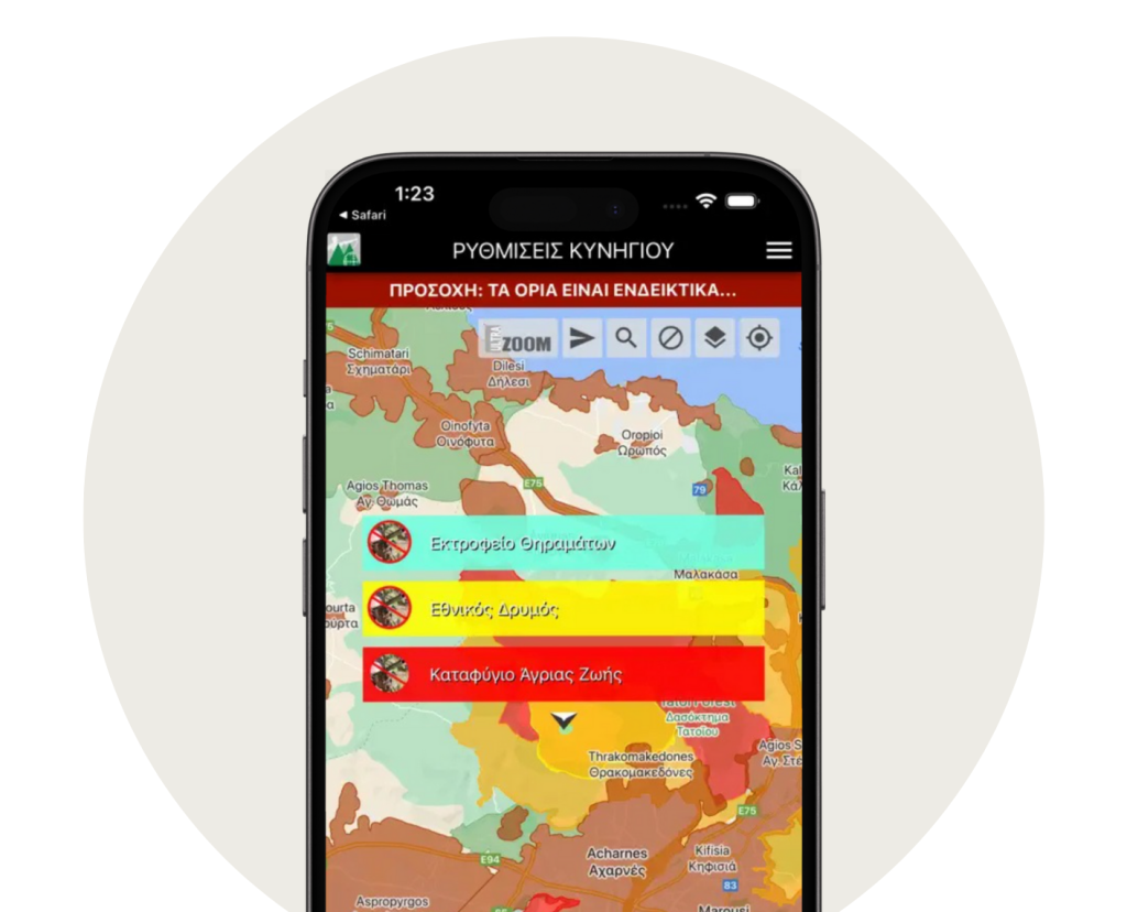 Κυνηγετικές αρχές, σύλλογοι και δασαρχεία στο κινητό σας. Αναζητήστε, καλέστε ή δείτε το στίγμα τους και προσθέστε τα δικά σας σημεία με ειδικά εικονίδια.